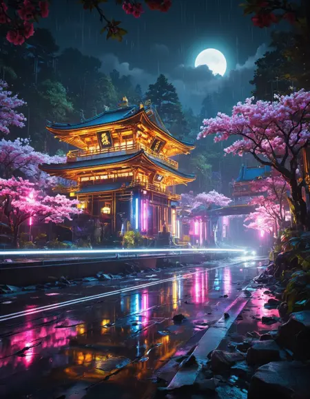 사이버펑크 또는 일반적인 아시아 사원과 원하는 것을 생성합니다.