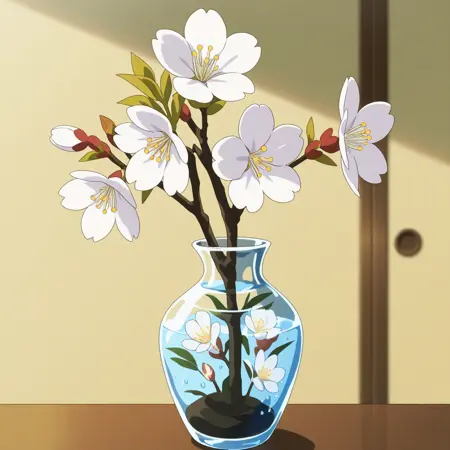 本LoRA基于一张输出图像构建,以梅枝和梅花的照片为基础。