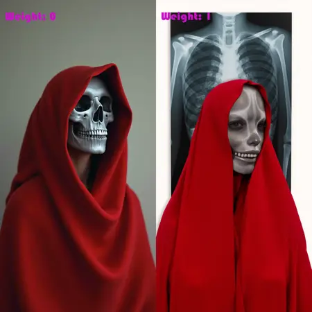 Occult Kaos 是一个摄影风格模型,为你的生成图像注入浓郁的超现实、混乱恐怖与克苏鲁式怪诞元素。它主要聚焦于(被附身的?)个体和(潜在的)邪教徒,但也能为任何图像增添一抹腐败的细节。