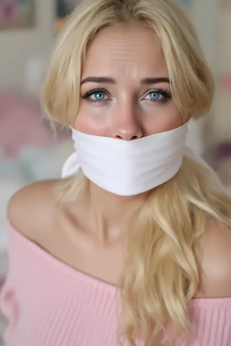 A cloth gag (otm-oth, i.e. over the mouth and over the hair) for Flux.