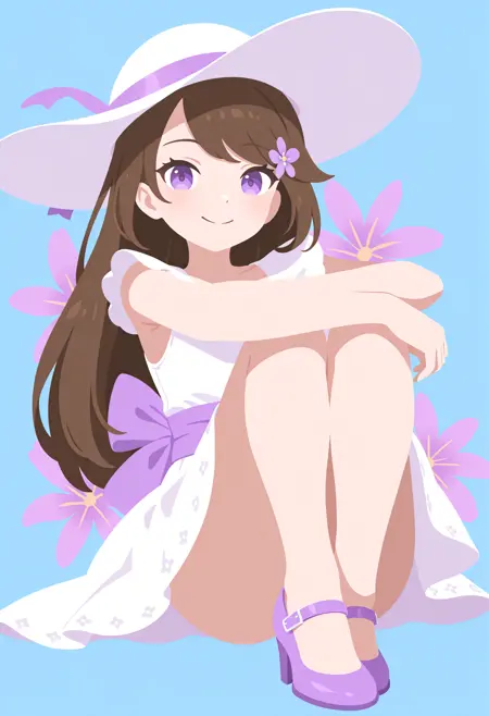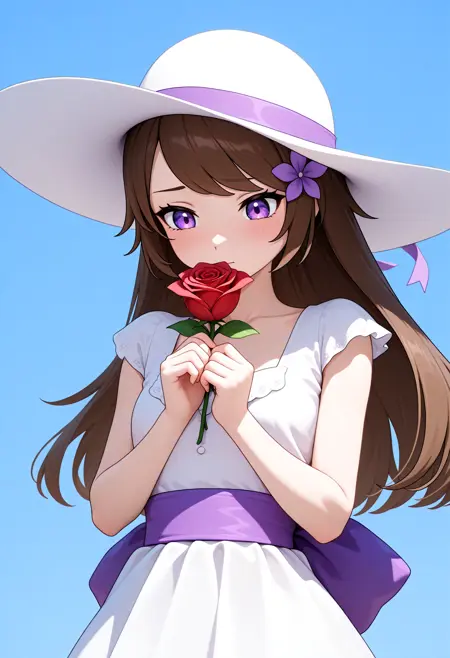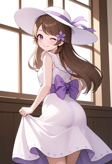 キーワードは l4dybw で、デフォルトの衣装には:白いドレス、紫のサッシュ、サンハット、髪の花、紫のヒールを使用してください。