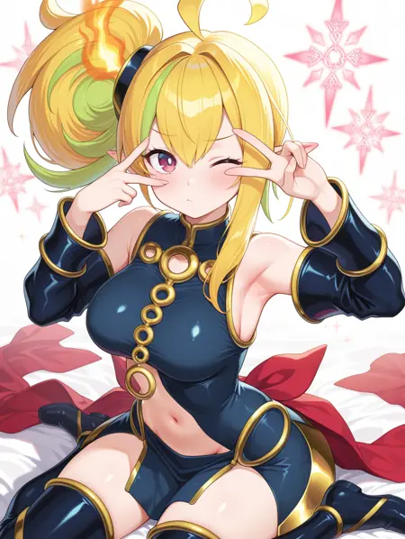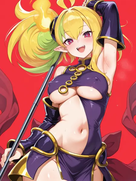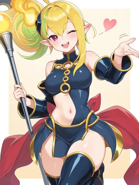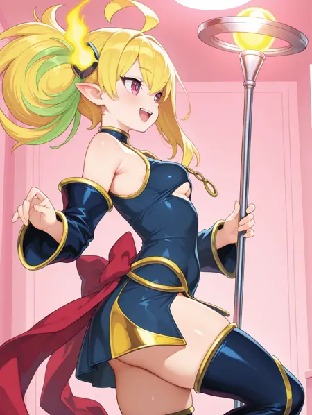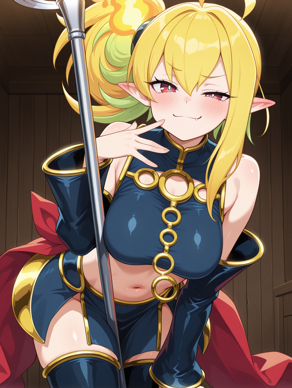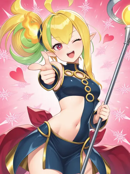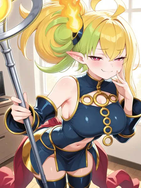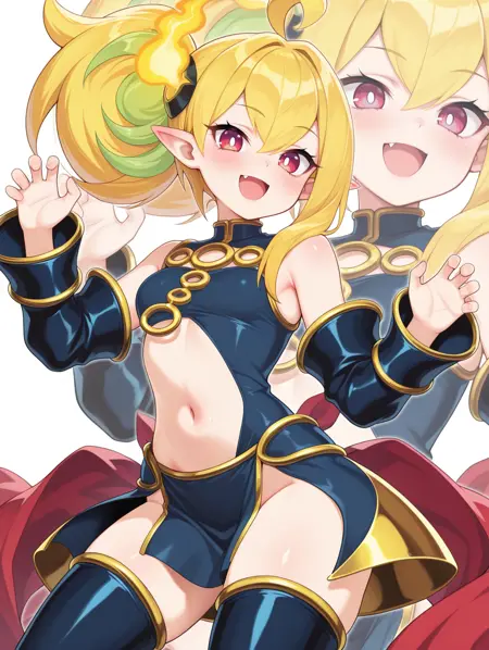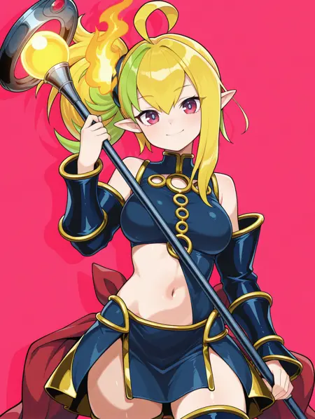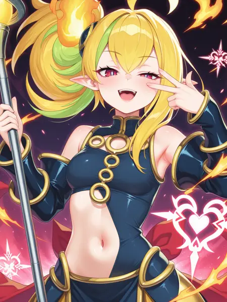 标签(其他):肚脐,腹部,鬓发,漂浮的粉色水晶,官方艺术,动漫上色,魔法阵,尖牙,控火术