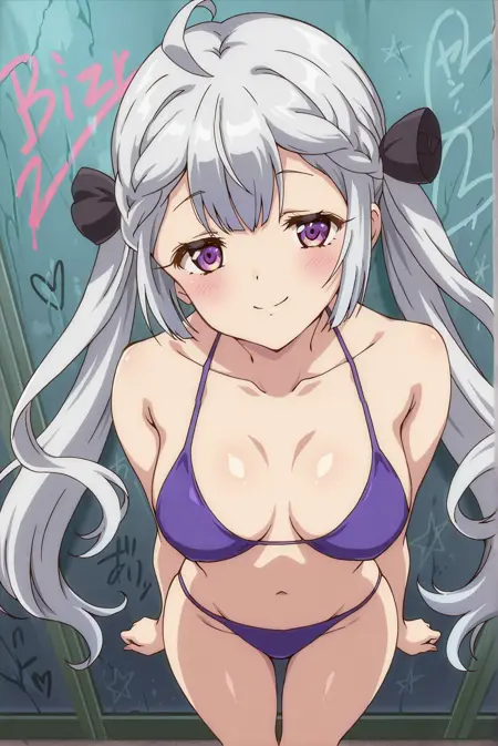 基础款:hakua-ber,1girl,银发,长发,双马尾,呆毛,发带,紫眼