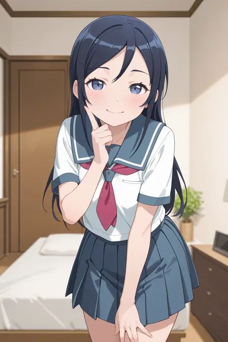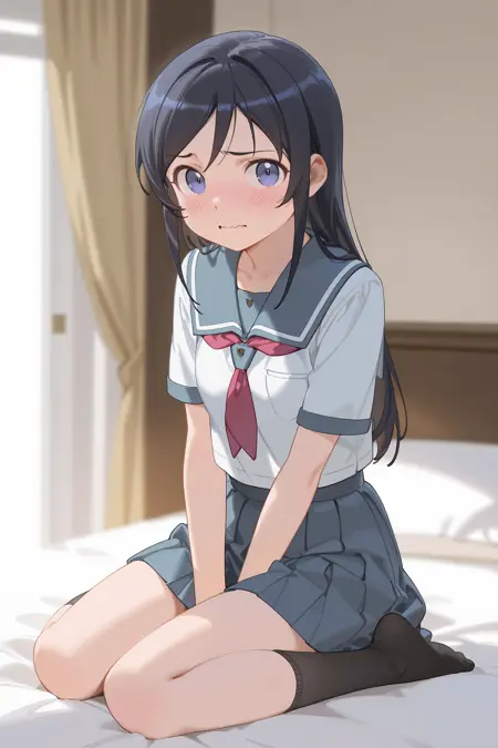 원작 TV 에피소드의 일반적인 교복을 위한 추가 프롬프트: serafuku, blue pleated skirt, red neckerchief, loafers, black socks