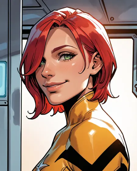 トリガー: angelicajones, 紅髪, 短髪, 緑の目, ボディスーツ,