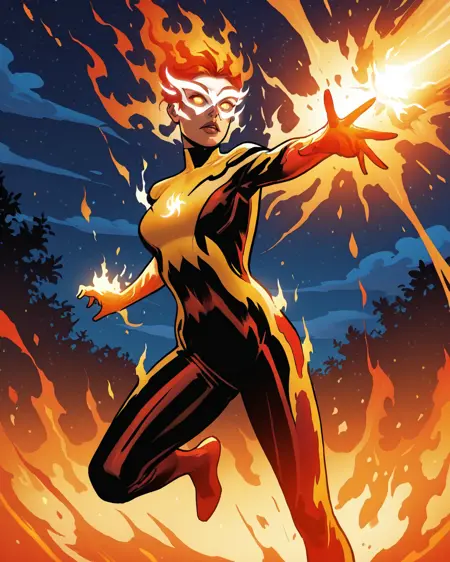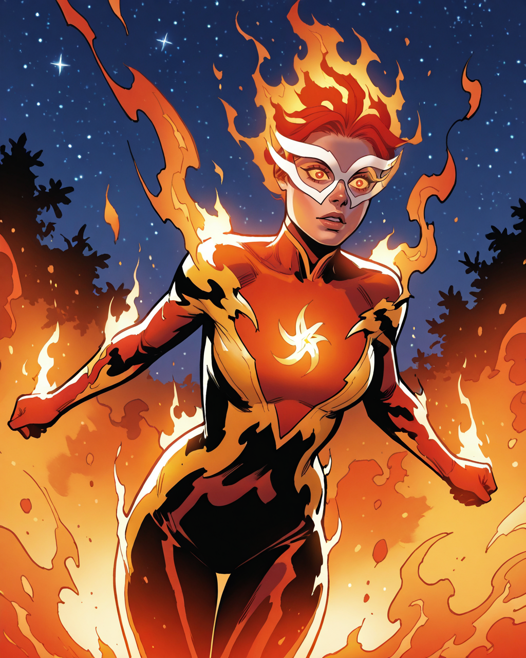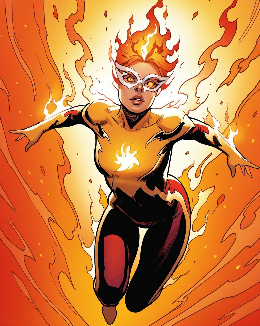 マーベル・コミックスのアンジェリカ・ジョーンズ、通称ファイアスター。この衣装は、クロカーン時代にX-Menに参加した際のもので、ウェストコースト・アベンジャーズでの現在の衣装です。