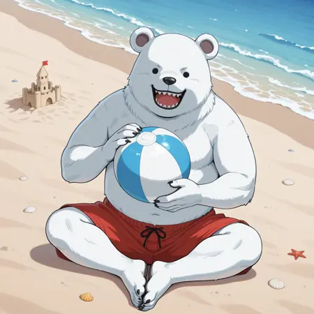 使用タグ: 2d、男性、シロクマ、白い毛、白目なし、ドット目、黒い目、黒い鼻、鋭い歯、黒い爪