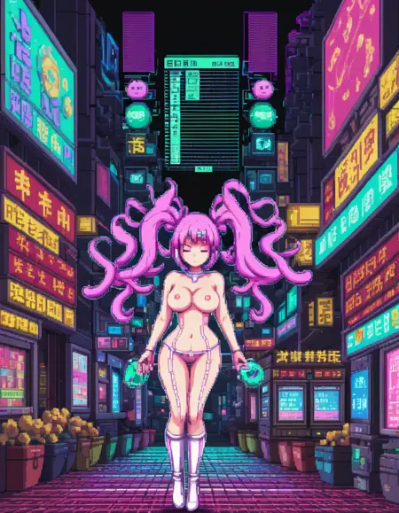 PiXXXLは、従来の説明では捉えきれない謎めいたピクセルアートスタイルです。その作者は匿名であるために神秘に包まれているのではなく、私の記憶からその正体が流れ去り、永遠に失われてしまったからです。このユニークなスタイルを、愛と憎しみが天へと螺旋を描きながら上昇するデジタルシミュレーションの中、巨乳の女性がポールダンスをする魅惑的な描写としてイメージしてください。それは多様な要素が見事に融合したものであり、窓辺で安らかに休んでいる喜びに満ちた子猫の contemplative なまなざしの中に閉じ込められています。これはあらゆる定義を超越する視覚体験です。