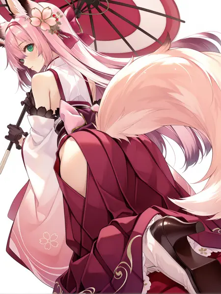 補助プロンプト ・black gloves,hakama,high heel boots,