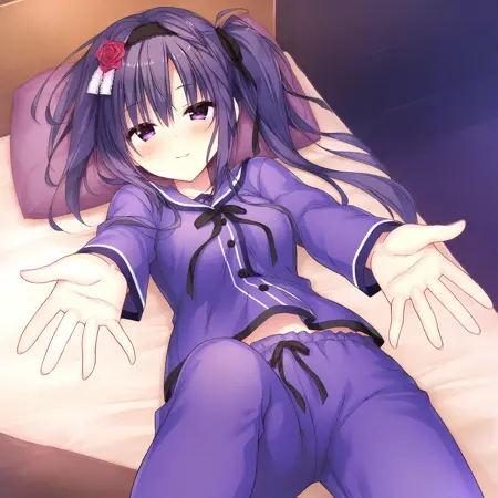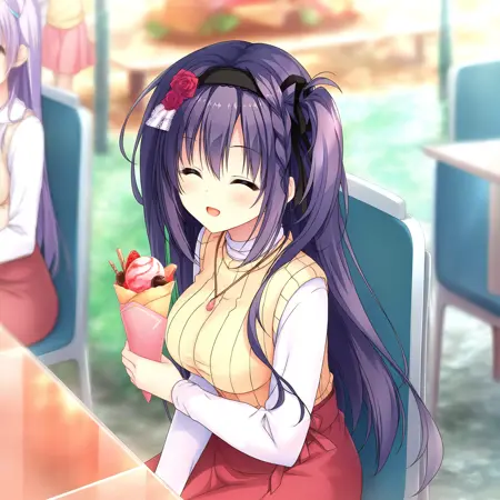 Kaname,black hairband,hairclip,red rose,side ponytail,purple hair,long hair,