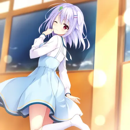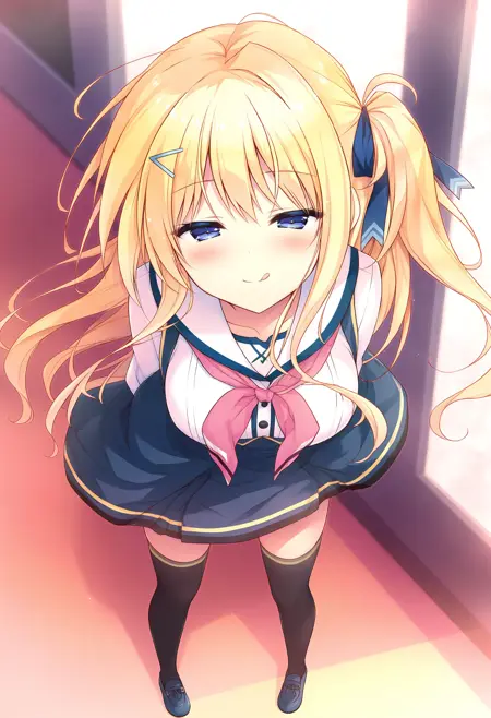 Euvely,blonde hair,side ponytail,hairclip,blue ribbon,hair ribbon,long hair,blue eyes,