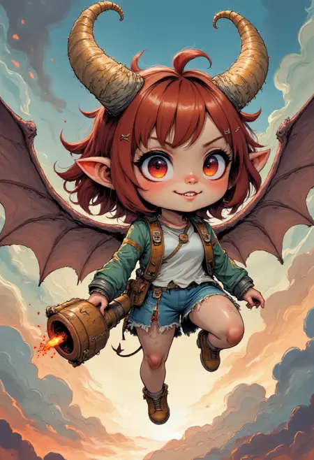 欢迎来到 小巧而强大,可爱又疯狂,这个 LoRA 专为放大你的想象力,并将其缩小至最具活力的尺度而打造。无论是描绘一个活泼的Q版冒险者、骑着机甲的怪才,还是一个粉彩能量驱动的哥布林小恶魔,这个模型都能为其注入生动而狂野的魅力。