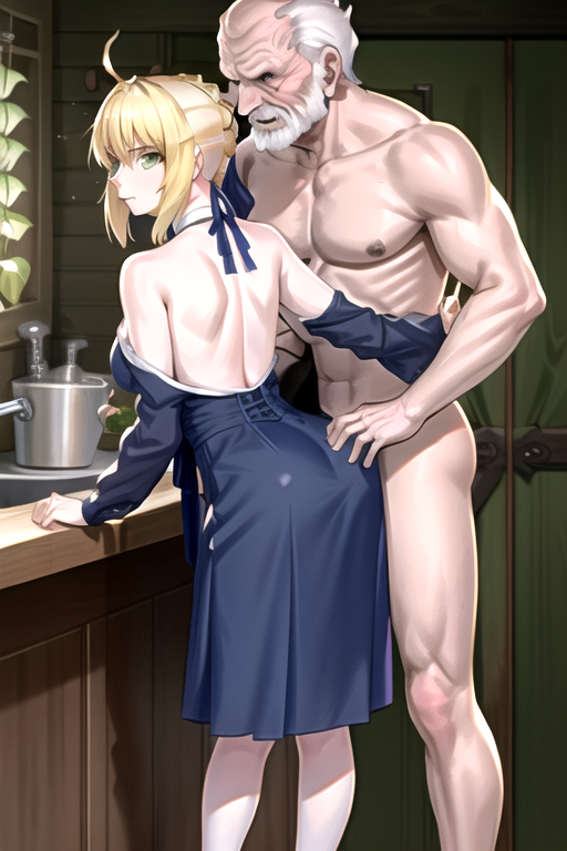 ZoukenArtoria, an old man and a woman, hetero, cowboy shot, completely nude, sex
