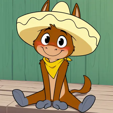 推荐标签(适用于v2): 大盖帽,领巾**,** 棕色毛发,灰色双手,上半身,灰色脚部