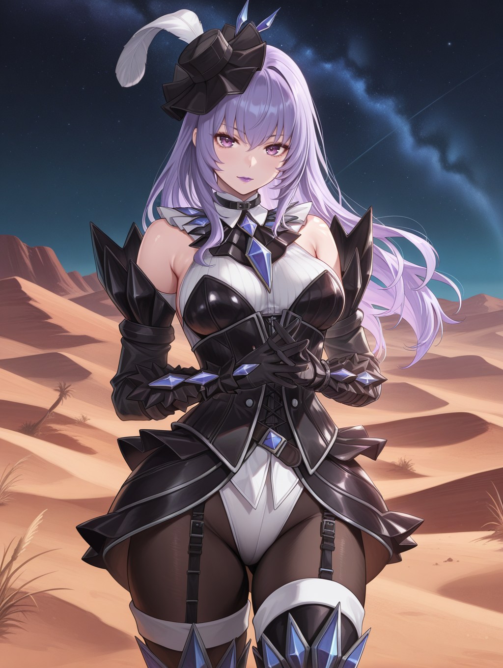 태그(의상 - 검정): 검은 탑햇, 검은 벨트 칼라, 검은 갑옷 드레스, 검은 코르셋, 검은 갑옷 장갑, 기터 스트랩, 검은 갑옷 부츠,