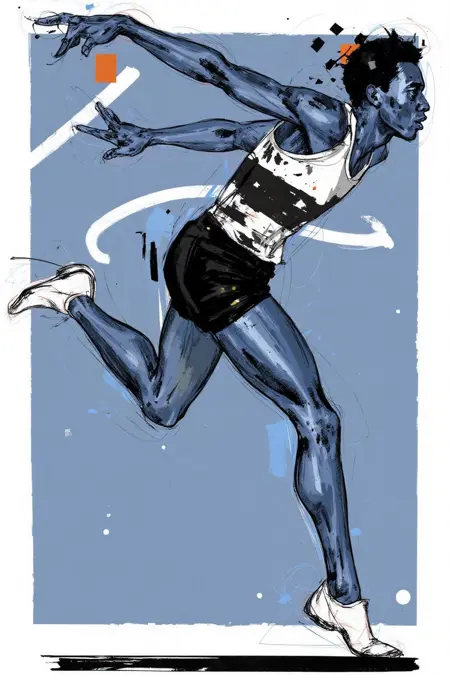 提示:poster illustration. A tiger, a man and a woman running in track and field.