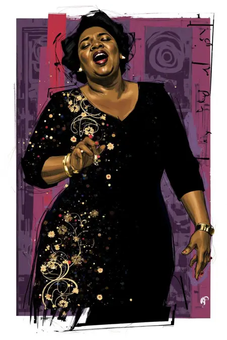 提示:poster illustration. A Fox, a man and a woman playing in a Jazz band.