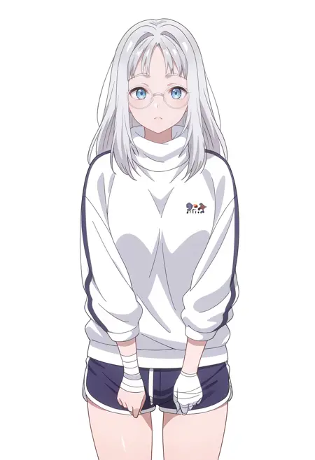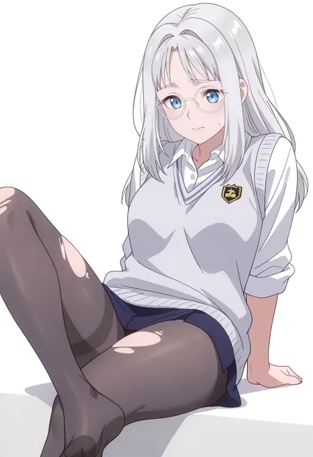 hina/cnn, 1girl, long hair, blue eyes, grey hair, glasses,