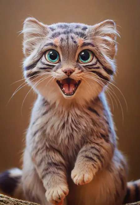 パラスの猫(Otocolobus manul)は、通称「マヌル」とも呼ばれる、中央アジアの山岳地帯に生息する小型の野生猫。長く密度の高い淡灰色の被毛が特徴で、頭体長は46〜65cm(18〜26インチ)、尾長は21〜31cm(8.3〜12.2インチ)です。その生息地では雨水が少なく、極端な気温変化がある大陸性気候に適応しており、優れた擬態能力を持っています。