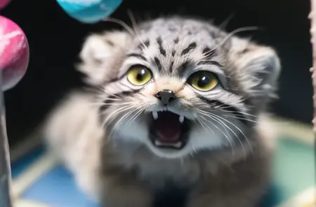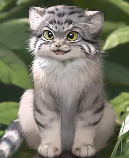 The Pallas's cat (Otocolobus manul), also known as the manul, is a small wild cat with long and dense light grey fur, native to mountainous regions across central Asia. Its head-and-body length ranges from 46 to 65 cm (18 to 26 in) with a 21 to 31 cm (8.3 to 12.2 in) long bushy tail. It is well camouflaged and adapted to the cold continental climate in its native range, which receives little rainfall and experiences a wide range of temperatures.