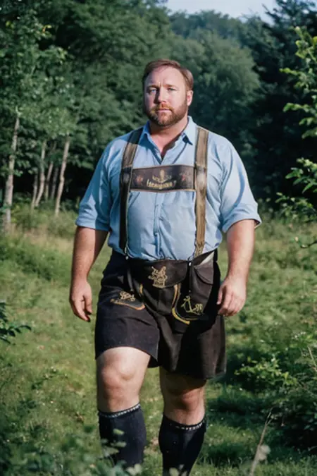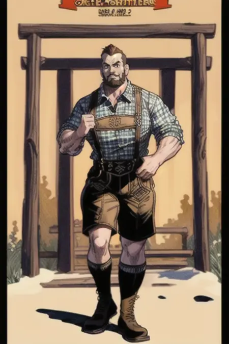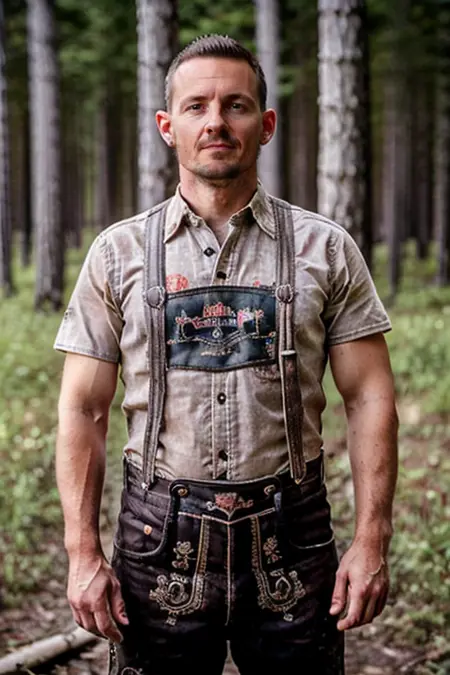 This model is based off of a well known type of traditional clothing that has become a symbol of a part of the world. It is known as the lederhosen. The distinct breeches with suspenders was more widespread in other parts of Europe in various forms until around the 18th century. By then, they were more commonly seen in the Alps than elsewhere. As a result, the lederhosen (leather pants) became a visual symbol of the area. In German they're commonly known as Trachtenlederhose in order to distinguish by what the world known as lederhosen.