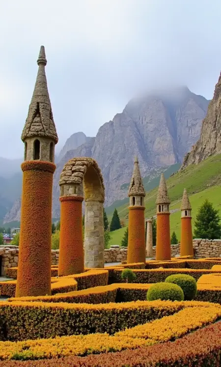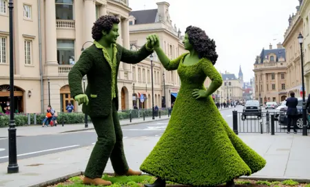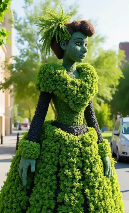 a topiary statue of <your topic>. Made of accurately trimmed shrubs.