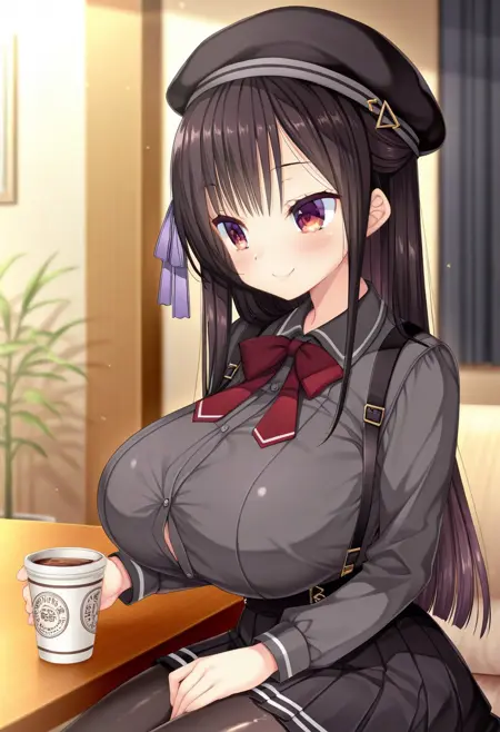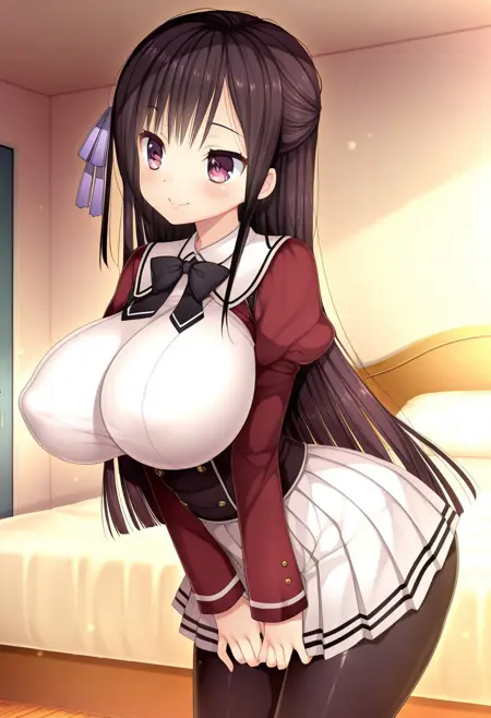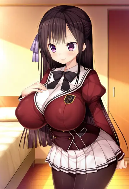 推荐提示:Yaya Rindou,大乳房,紫色眼睛,斜眼,黑发,长发,发饰,