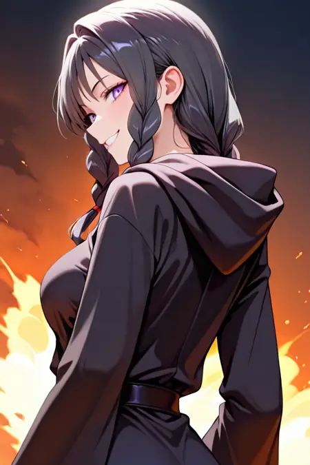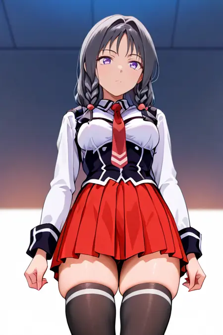 1girl, solo, saki_kiriya, long hair, twin braids, braid, black hair, purple eyes,