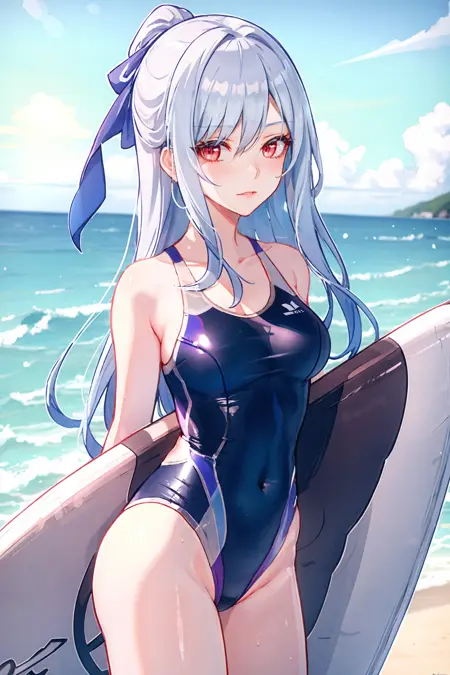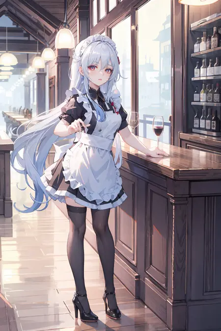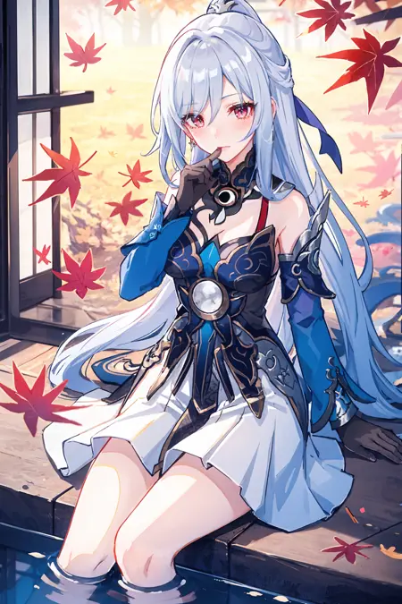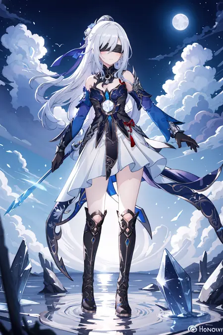 对于V2版本,默认服装的附加提示:蓝色连衣裙、分体袖子、白色裙子、骨盆帘、吊颈式、耳环、珠宝、黑色手套、过膝靴