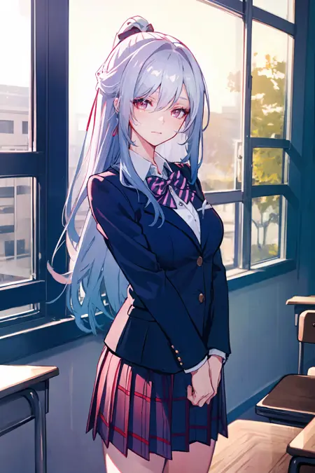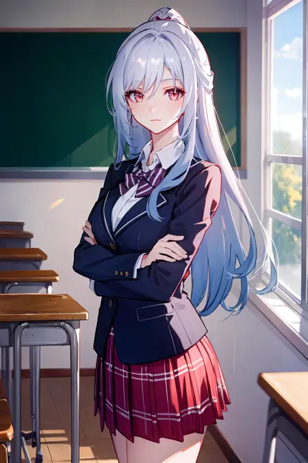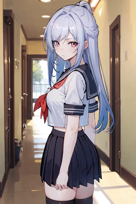 For V1, additional prompts for default costume: black gloves, high heel boots, blue dress, detached sleeves, hair ribbon