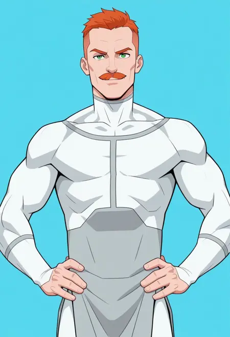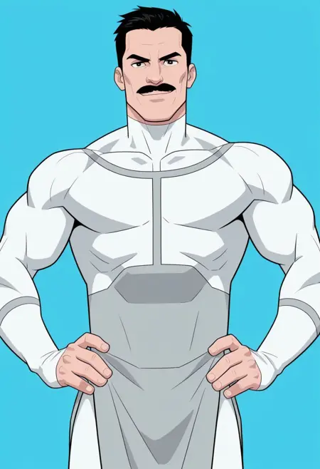 viltrumite_bodysuit, white bodysuit, grey trim, loincloth, gray boots, toned,