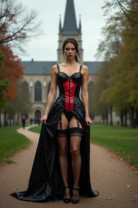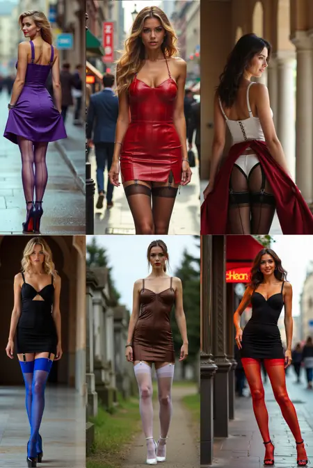 Stockings in ANY COLOR, worn either under a dress or with garter belt / corset with panties.
