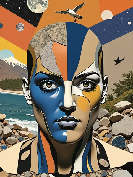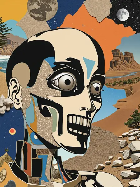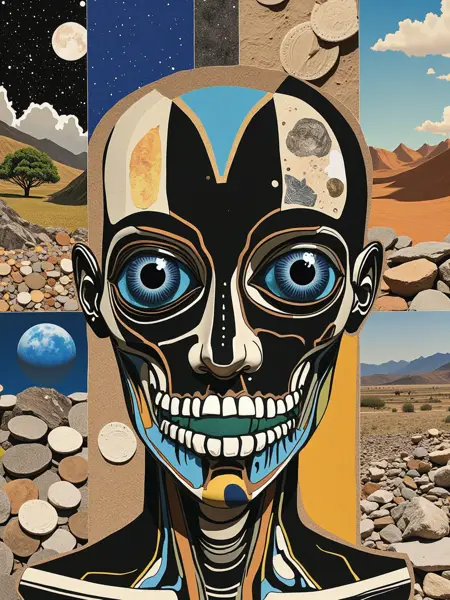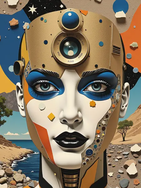 机器人面部与多种艺术风格的疯狂混合,适合使用冗长而疯狂的提示,但不仅限于此