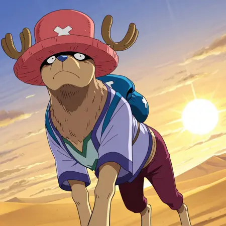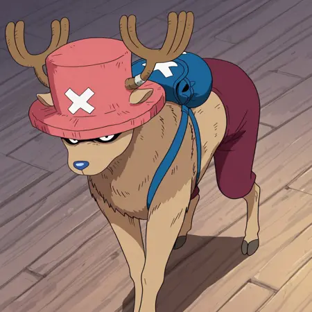 《海贼王》中的托尼托尼·乔巴。- 整体训练使用了官方艺术图及大量他的(及其形态/特征)动画截图。
