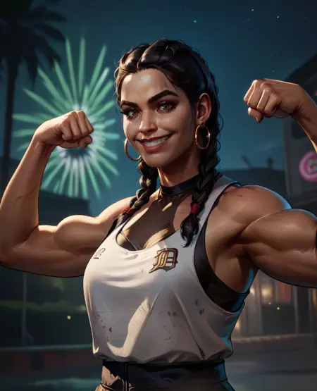 carla、黒髪、茶色の目、ツインブレード、筋肉質