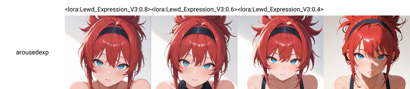 권장 가중치: 0~2.0 사이. 아래 비교 사항을 참조하세요. 그러나 다양한 표현은 신뢰성 있게 유도하기 위해 다른 가중치가 필요합니다. 1.0은 모든 표현에 적합한 시작점이며, 표현을 출력합니다. 약 0.80 이상부터 스타일 변화가 눈에 띄기 시작합니다.