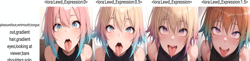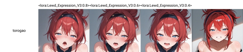 데이터셋의 대폭 정리 및 트리거 단어 개선. V2의 트리거 단어 “pleasureface”는 “lewd expression”으로 대체되었습니다. 향후 버전에서는 개념 추가, 병합 또는 제거에 따라 트리거 단어 명칭이 변경될 수 있습니다.