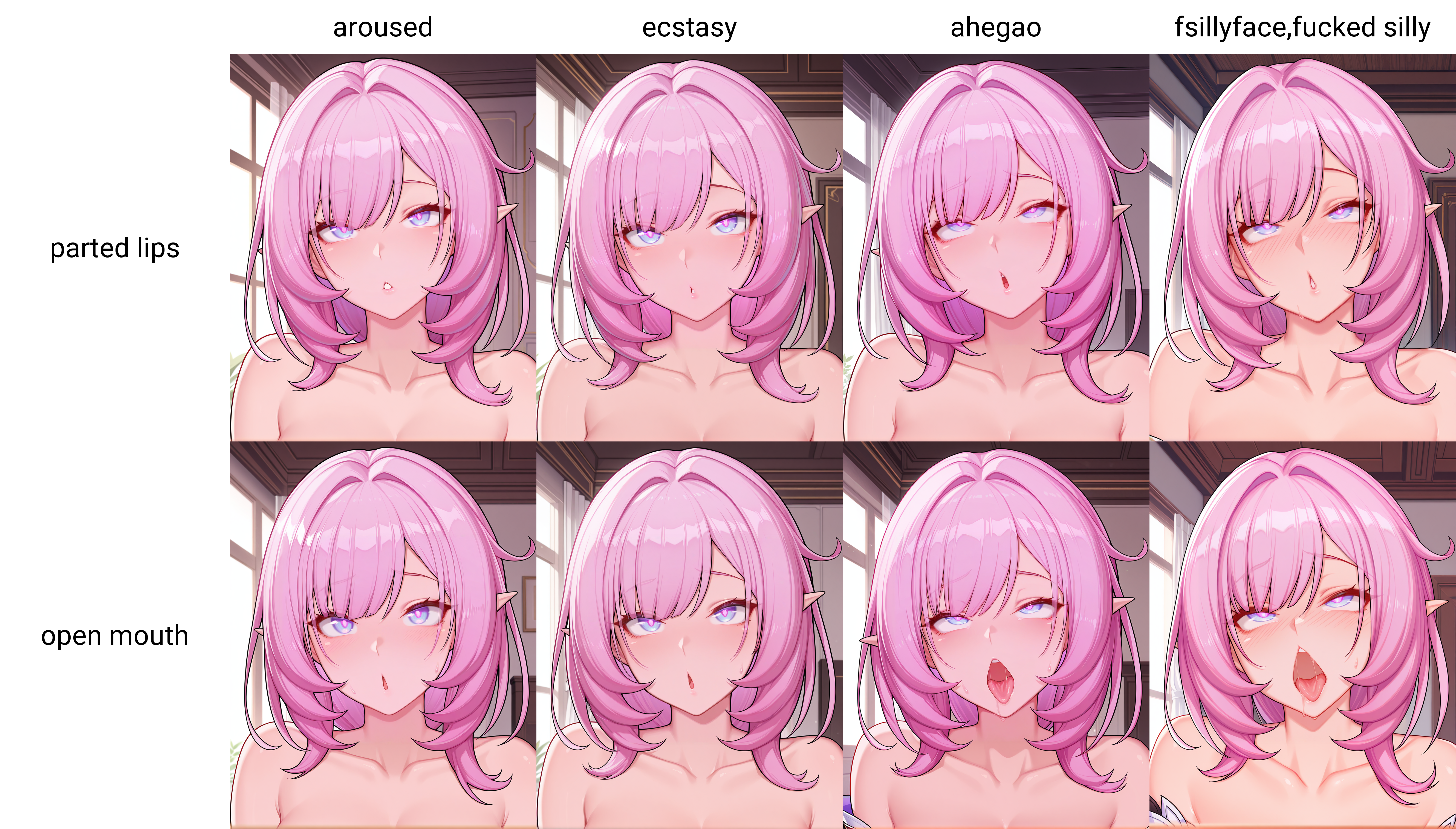 A part-concept, part-style LoRA that provides a modified style of lewd expressions. Note that the trigger words are different across versions, so always reference the version notes on the side as I place the trigger words in the details table for each version. This LoRA will include major updates (megapack versions) and supplemental updates which will be single-concept LoRA dedicated to individual expressions. Use the supplemental LoRA releases if there is a specific expression you are interested in, or the megapack if you want to experiment with all of them. Note that the megapacks will have some amount of concept bleeding, so the supplemental versions will always be the most "pure" of concept.