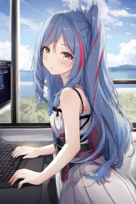 トレーニング中に削除されたタグ:1girl, solo, long hair, multicolored hair, blue hair, duel monster, pink hair, blue eyes, purple eyes, streaked hair, very long hair, bangs, one side up, virtual youtuber, hair ornament, red hair, gradient hair。衣装のタグは変更されていません。