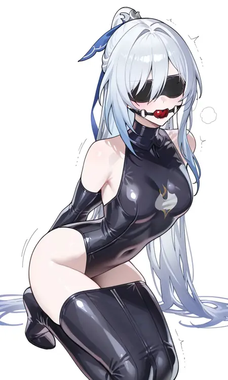 或:black latex legbinder, legs together, clothing cutout,