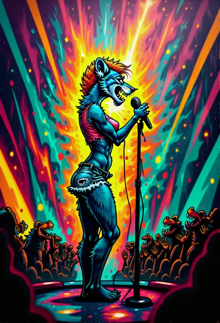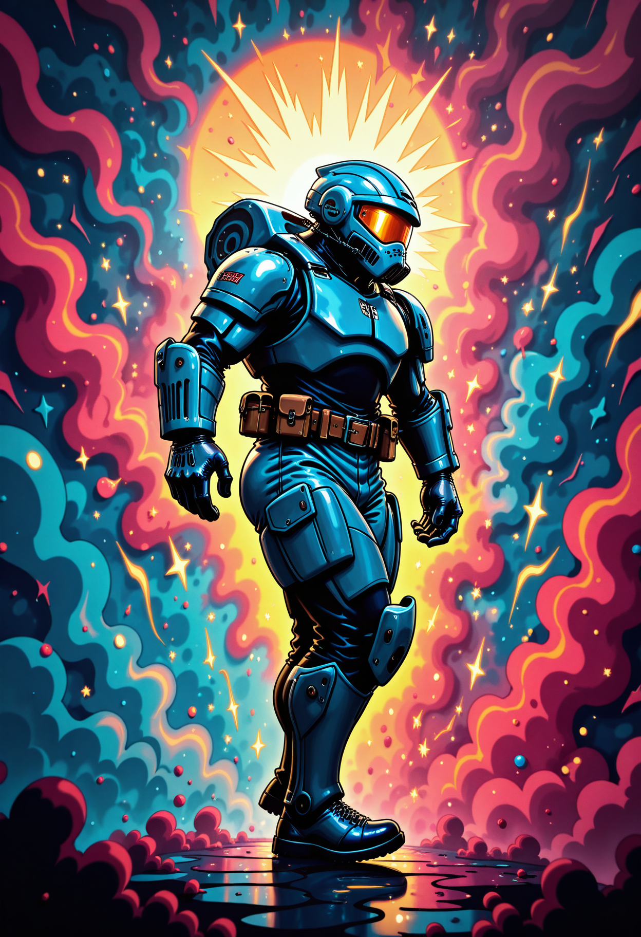 プロンプト:これは、**(SUBJECT)**を、鮮やかでスタイル化されたデジタルドローイングとして、劇的で抽象的な背景に描いたものです。