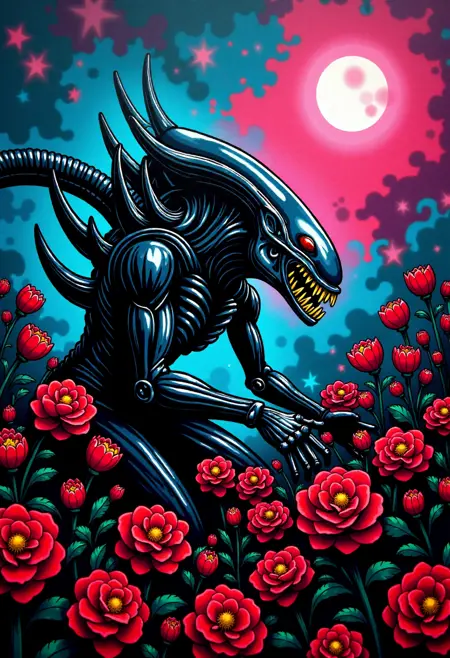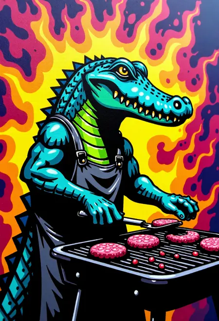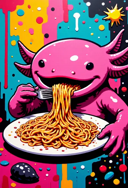 Brick Banksy와 동시에 학습된 이 모델은 표면 대신 두꺼운 선으로 구성된 추상적 배경 위의 캐릭터/객체에 초점을 맞춘 일러스트러티브 스타일에 특화되어 있습니다.