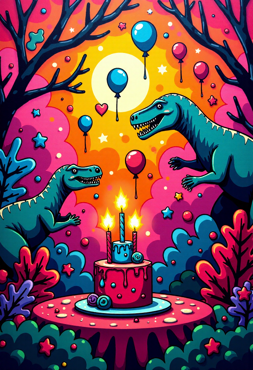 프롬프트: 이는 (SUBJECT)를 중심으로, 드라마틱하고 추상적인 배경 위에 표현된 생동감 있고 스타일리시한 디지털 드로잉입니다.
