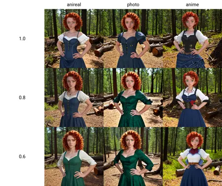 저는 애니메이션 비율과 얼굴을 가진 사람들을 생성하면서도 사실적인 음영을 적용하는 스타일을 단순히 재미로 만들어 보기로 결정했습니다. 이 스타일은 만화풍이거나 초현실적인 이미지에 사진처럼 사실적인 요소를 더하는 데 매우 잘 어울립니다. 동물이나 차량에도 적용될 수 있는 것으로 보이며, 이를 위해 약간 더 많은 프롬프트가 필요합니다. 사람들이 이 스타일을 좋아한다면, 외관을 더 다듬기 위해 계속 이 스타일을 업데이트할 것입니다.