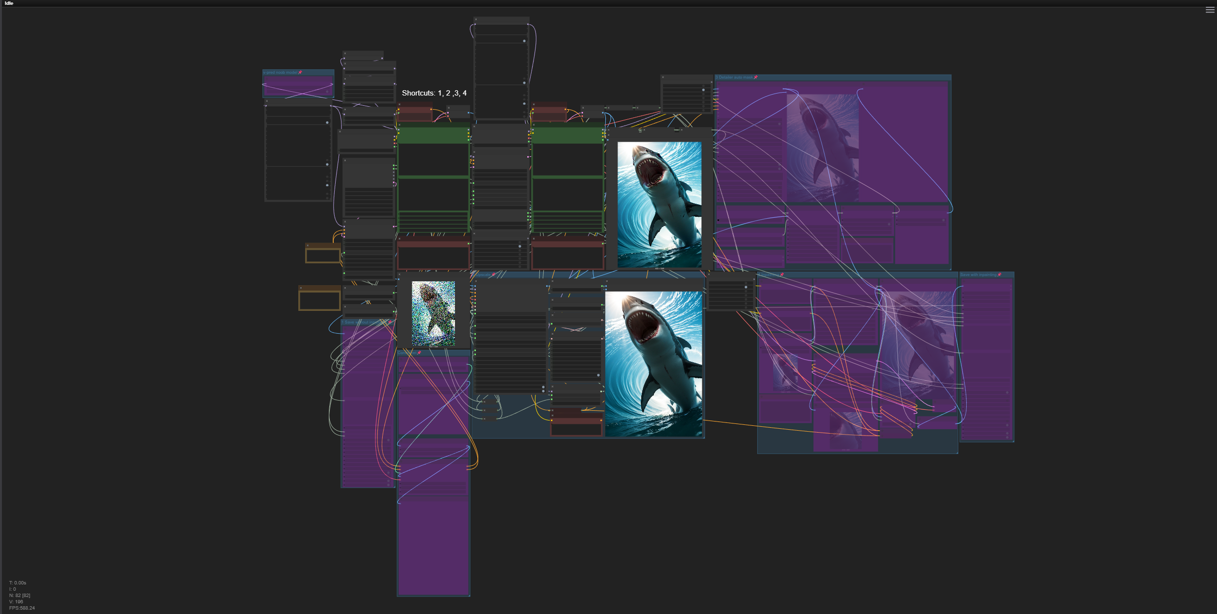 이 워크플로우의 주요 장점은 유명한 illustrious/noobai-xl 모델을 사용해 복잡한 자세나 캐릭터를 설정하고, SDXL 사진실감형 체크포인트로 이를 정교하게 보완하는 것입니다.