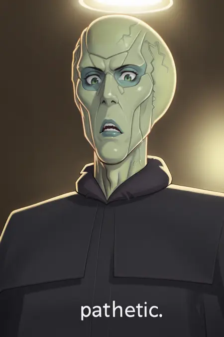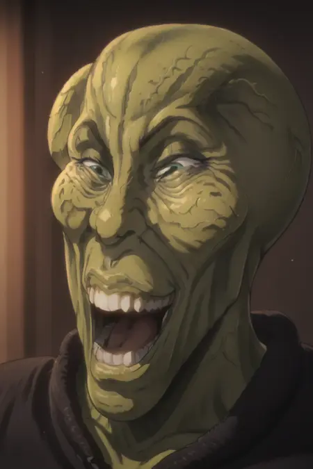 主要触发词: 巴洛克、彩色皮肤、秃头、绿色眼睛、斜眼、外星人、血管、恶搞