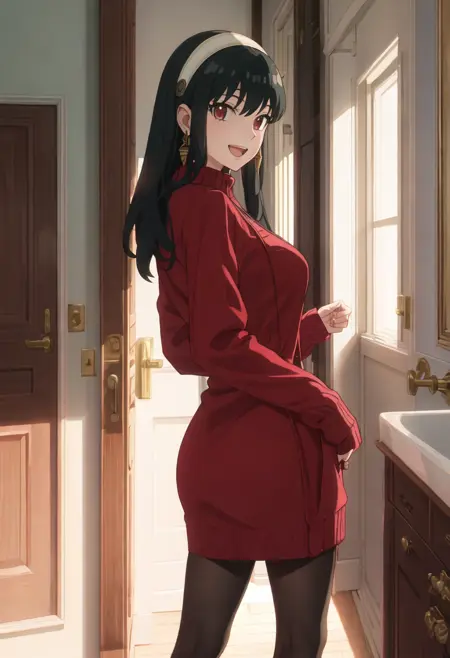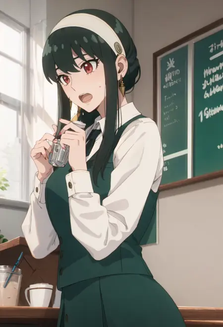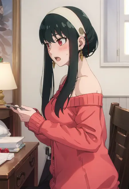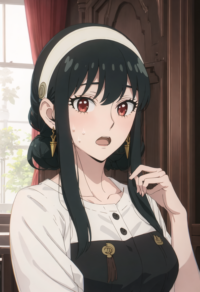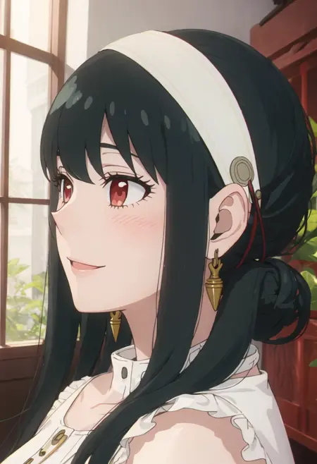트리거 단어는 yor_briar_spyxfamily이며, 추출된 태그는 black_hair, hairband, sidelocks, white_hairband, red_eyes, long_hair, earrings, gold_earrings입니다. 어떤 특징(예: 머리카락 색상)이 불안정한 경우 이 태그를 프롬프트에 추가하세요.