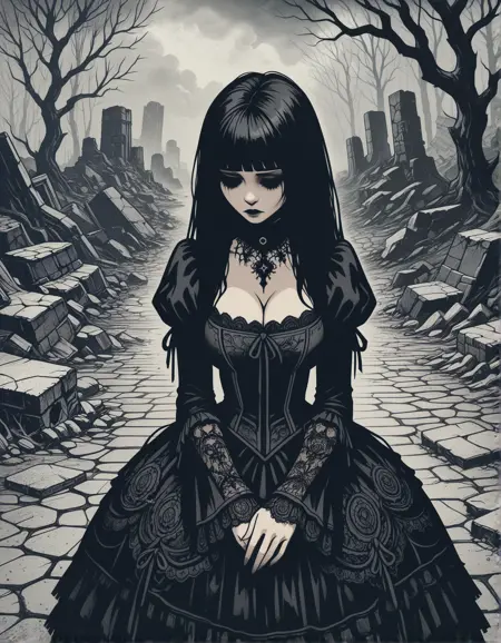 gothic, monochromatic, digital illustration, flat colors, line art, vintage dirt, artifacts, heavy film grain, {tour tags}, dark atmosphere, eerie