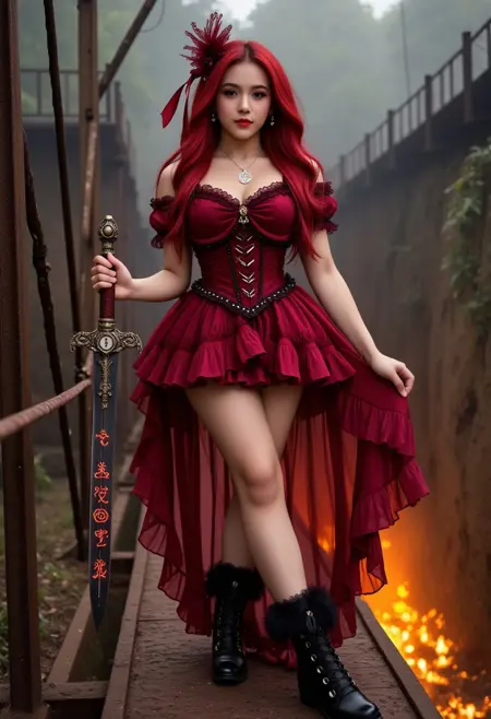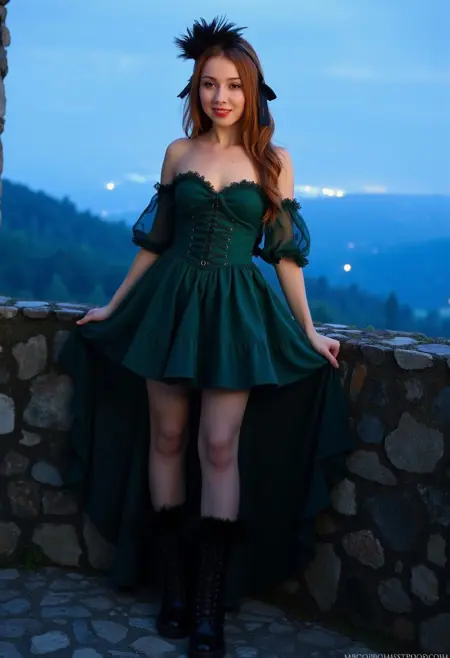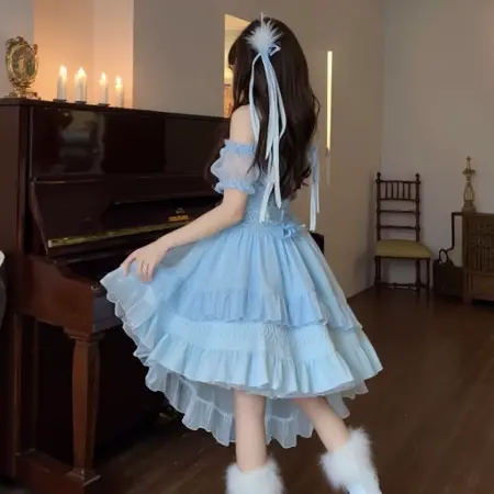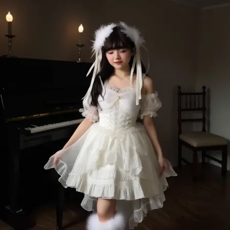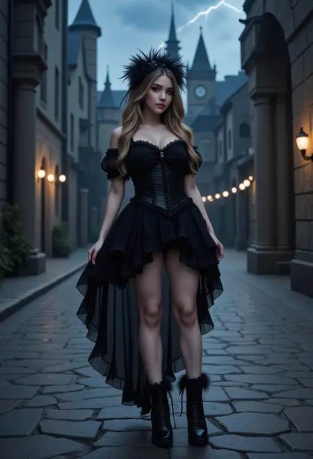 L0Lg0tH1c 是一款细节丰富、不对称的服装,以复杂的层叠设计为核心。它包含高低不一的褶边裙摆、透明层叠面料、修身上衣和蓬松袖子。常见配饰包括毛边或系带踝靴、羽毛头饰和长飘带。整体设计兼容柔和与哥特式配色方案,具有高视觉对比度与丰富纹理。