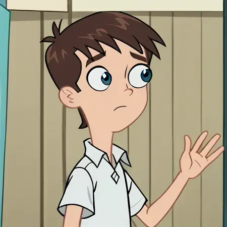 ダン・ポーベンマイア(『ファイナスとフェルブ』『マイル・マーフィーの法則』『ハムスター&グレテル』のクリエイター)のキャラクターデザインを模倣してください。